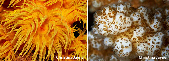 Coral polyps are delicate animals, and reefs are among the most fragile ecosystems on the planet. Polyps surround themselves with hard calcium carbonate skeletons for protection, but a thin tissue layer spreads over the surface of coral colonies (or heads), connecting polyps to each other. This tissue layer is easily damaged by contact, which can result in infection and disease. Corals are also susceptible to bleaching, climate change, and pollution.